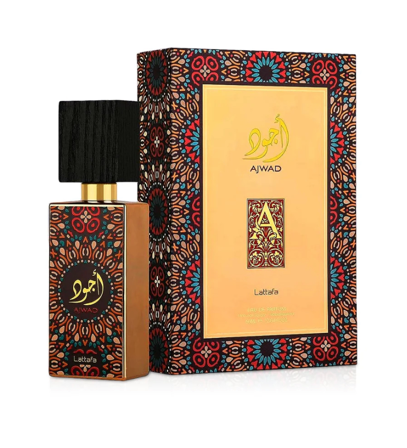 Ajwad je aromatična, sadno-cvetno-lesna dišava z orientalskim pridihom, ki jo Lattafa oglašuje kot uniseks — primerna za moške in ženske.
