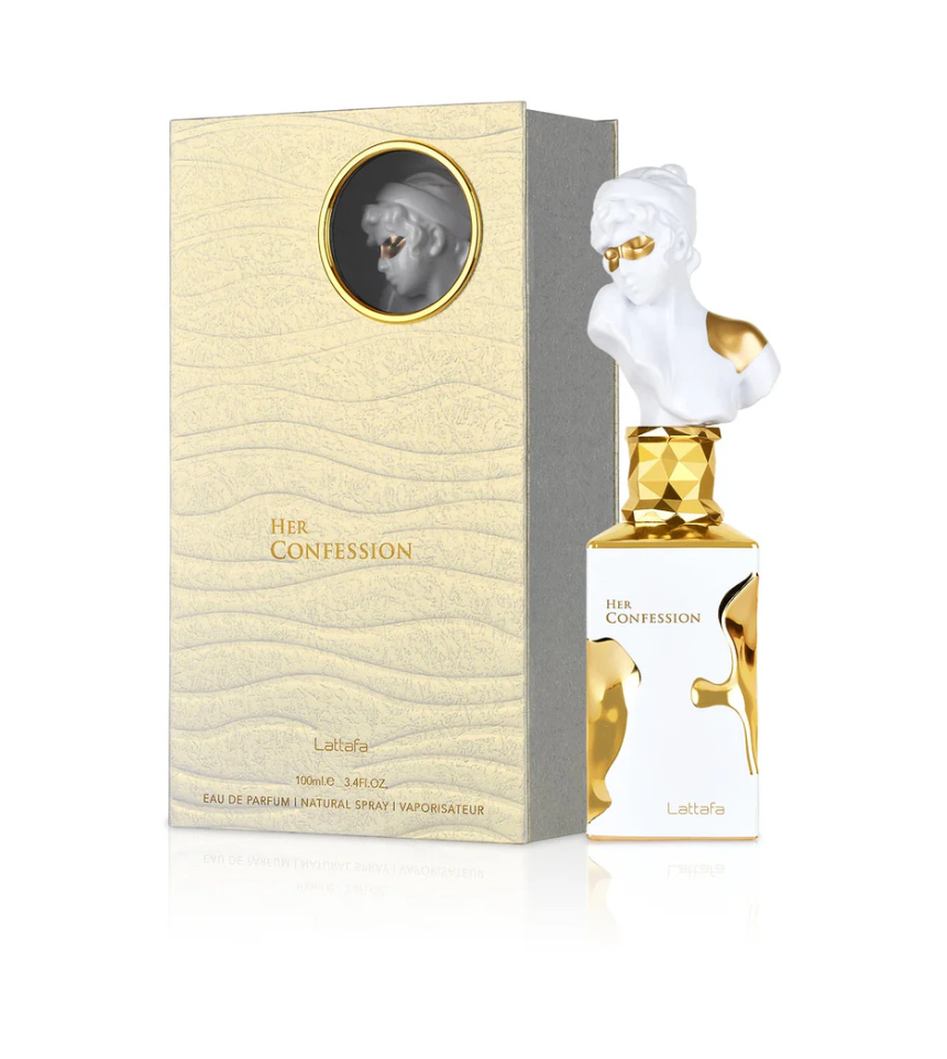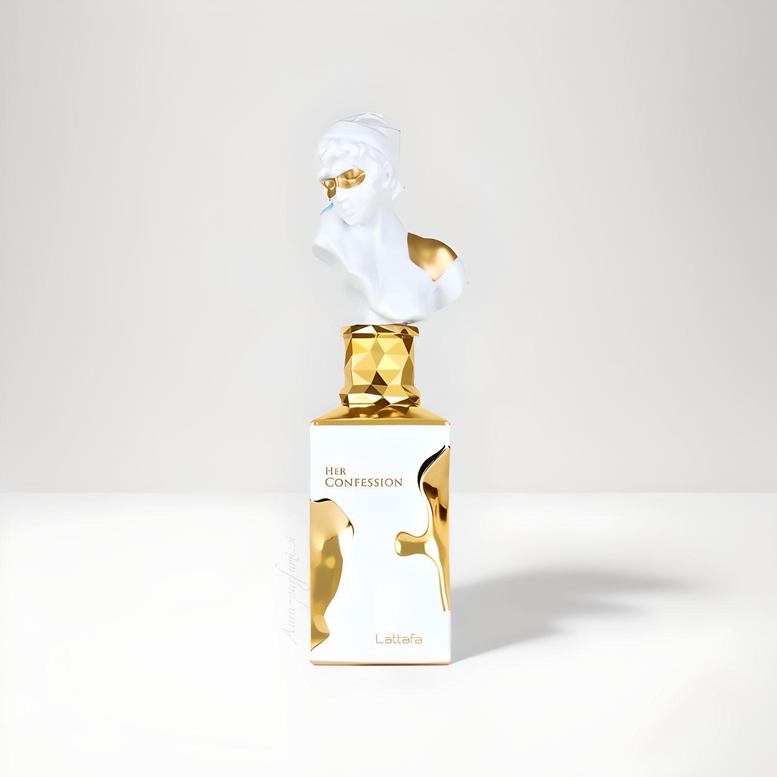 V praksi to pomeni, da se Her Confession razvija od rahlo začinjenega / skrivnostnega začetka → v bogato, ženstveno in elegantno cvetno-srce → do tople, sladke, kremne in čutne osnove, ki dostikrat spominja na mlečne / vanilijeve note z mošusom in tonko.
