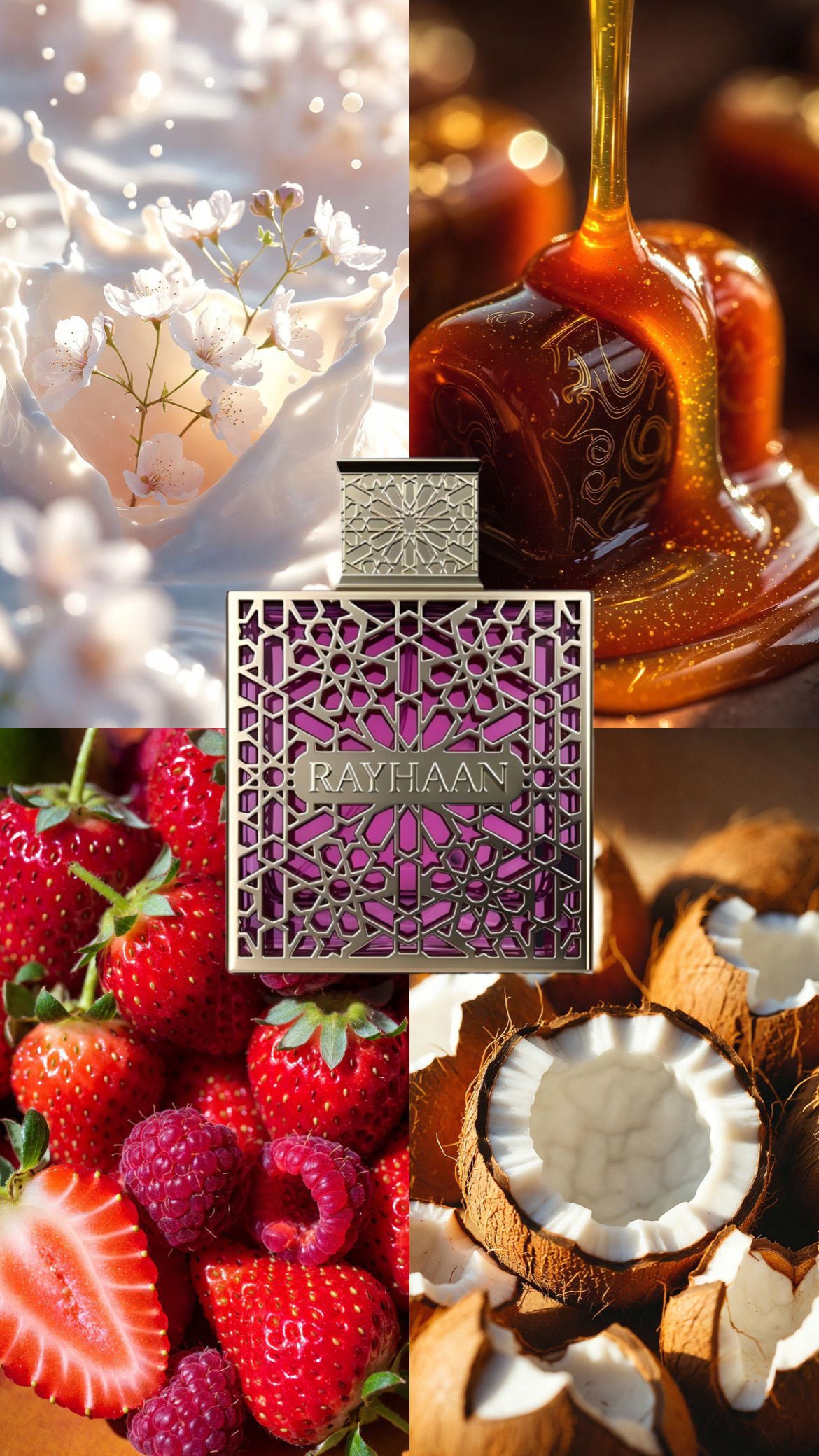 Rayhaan Kiss je vonj, ki ga mnogi opisujejo kot sladko, kremasto in nekoliko gurmansko dišavo, ki deluje prijetno toplo in vabljivo — kot sladica v steklenički.